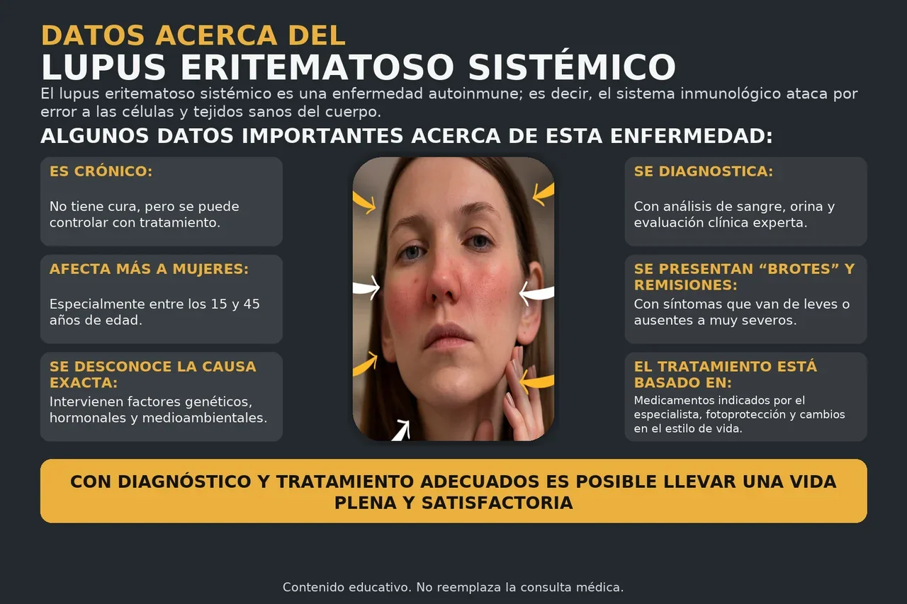 Es importante aclarar que el lupus no es un tipo de cáncer, sino una enfermedad autoinmune que puede controlarse con un buen seguimiento médico.